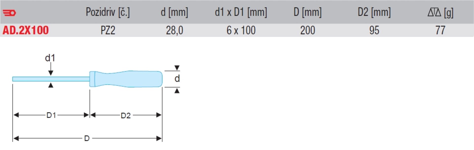 Produkty Vybavení autoservisů a dílen Ruční nářadí ŠROUBOVÁK ISORYL PZ 2X100 AD.2X100