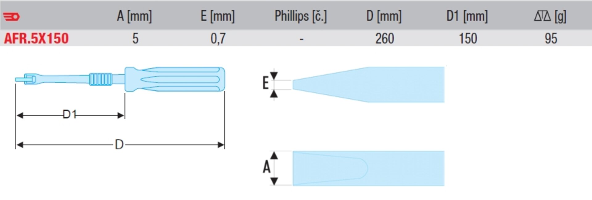 Produkty Vybavení autoservisů a dílen Ruční nářadí PLOCHÝ ŠROUBOVÁK S DRŽÁKEM HLAVY 5X150 AFR.5X150
