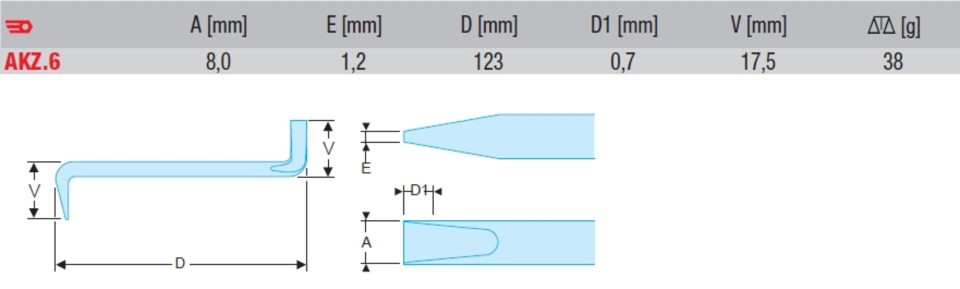 Produkty Vybavení autoservisů a dílen Ruční nářadí PLOCHÝ ZAHNUTÝ ŠROUBOVÁK 1,2X8,0 AKZ.6