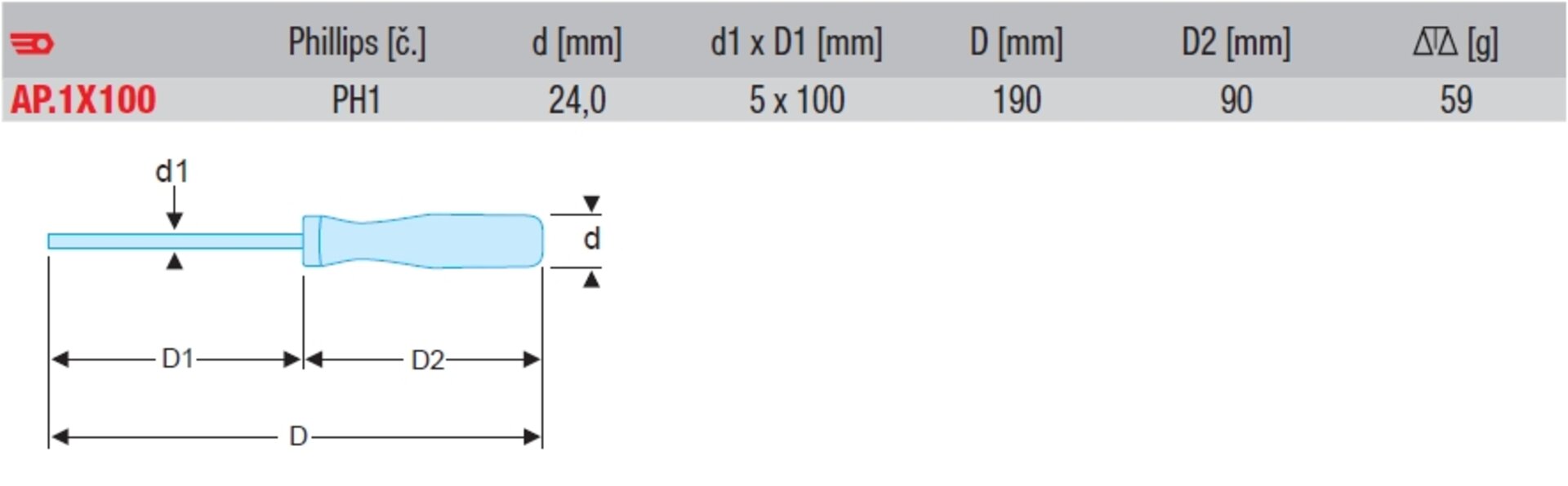 Produkty Vybavení autoservisů a dílen Ruční nářadí ŠROUBOVÁK ISORYL PH 1X100 AP.1X100
