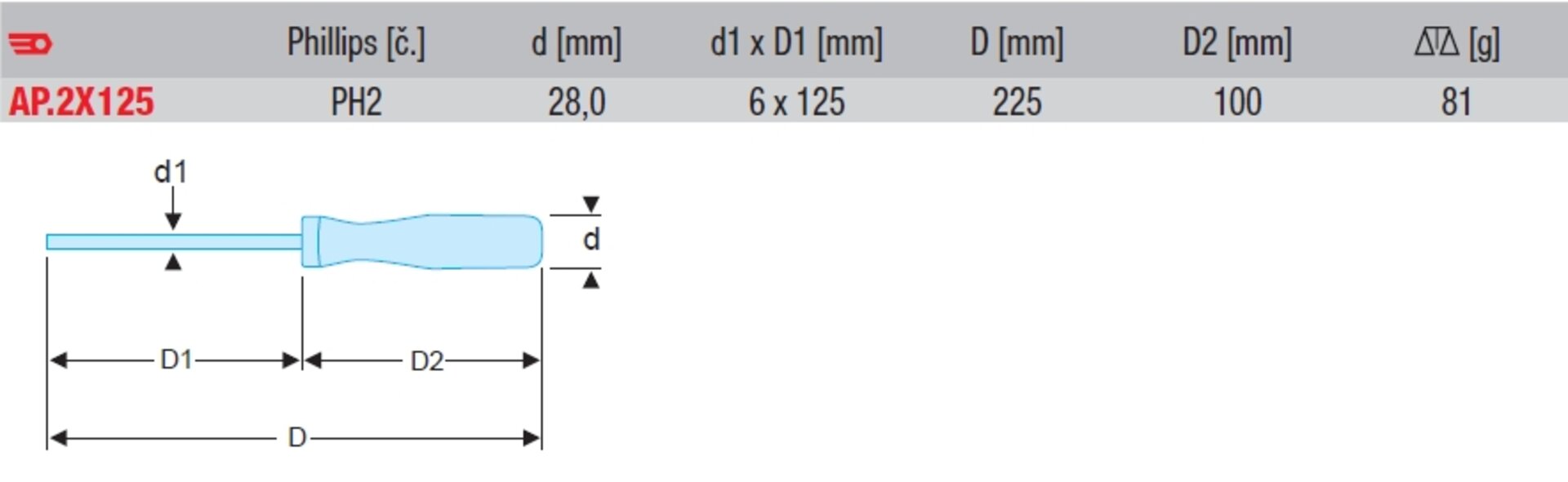 Produkty Vybavení autoservisů a dílen Ruční nářadí ŠROUBOVÁK ISORYL PH 2X125 AP.2X125