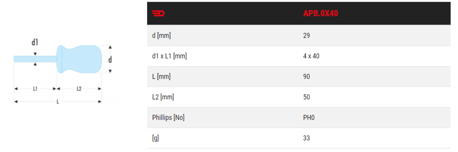 APB.0X40– ŠROUBOVÁK ISORYL PH KRÁTKÝ 0X40