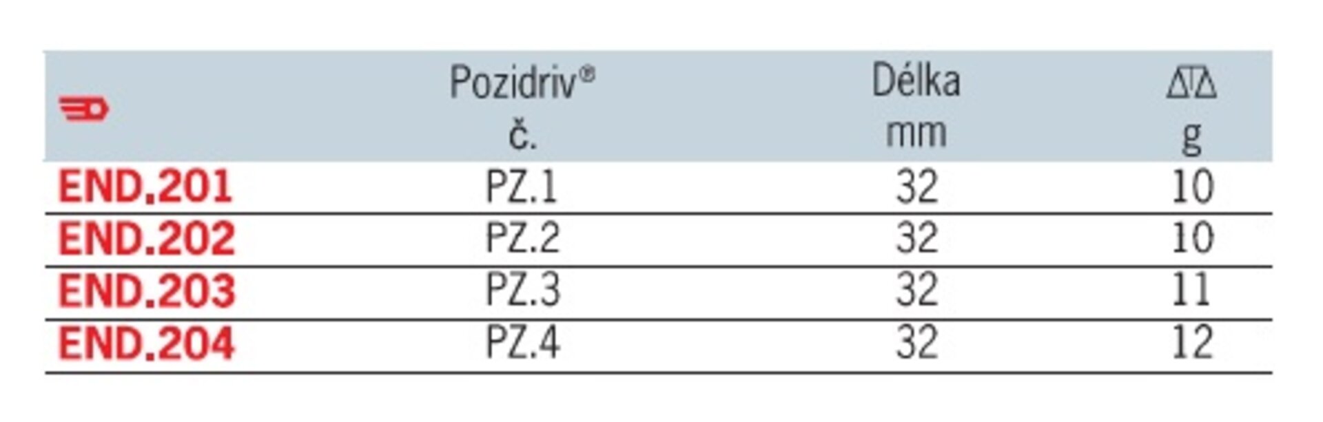 Produkty Vybavení autoservisů a dílen Ruční nářadí BIT POZIDRIV PZ3 END.203