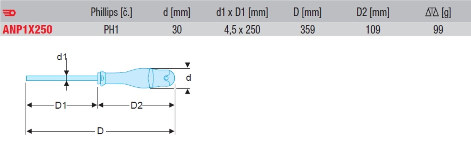Produkty Vybavení autoservisů a dílen Ruční nářadí ŠROUBOVÁK PROTWIST PHILLIPS 1X250 ANP1X250