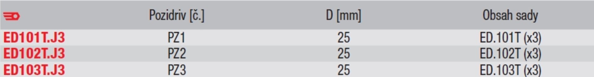 Produkty Vybavení autoservisů a dílen Ruční nářadí SOUPRAVA 3 BITŮ ED.103T ED103T.J3