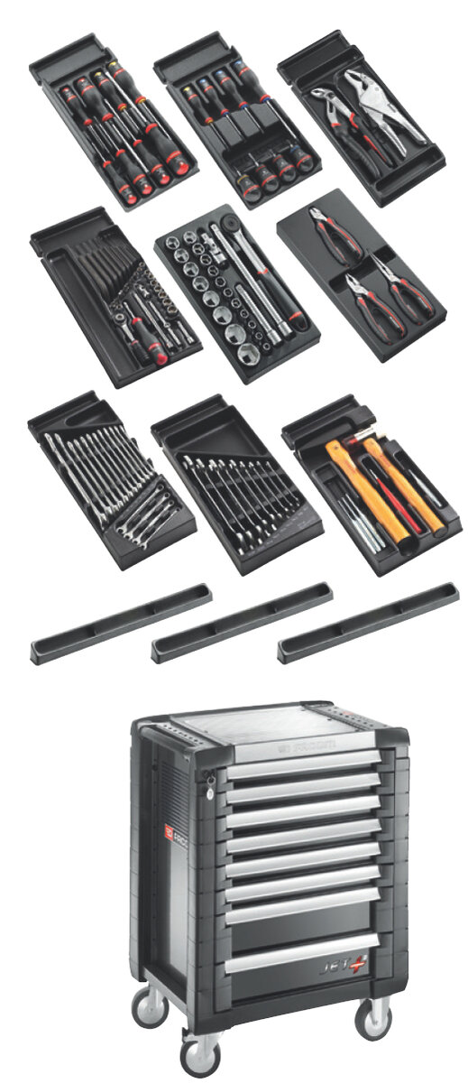 114DÍLNÁ SADA NÁŘADÍ V 8ZÁSUVKOVÉM ČERNÉM MONTÁŽNÍM VOZÍKU JET M3