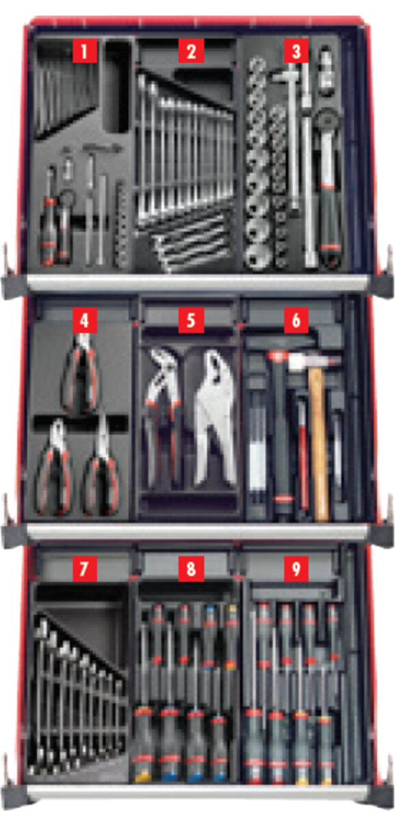 Produkty Vybavení autoservisů a dílen Ruční nářadí 114DÍLNÁ SADA NÁŘADÍ V 8ZÁSUVKOVÉM ČERNÉM MONTÁŽNÍM VOZÍKU JET M3 SPOTLIGHTJET8MG